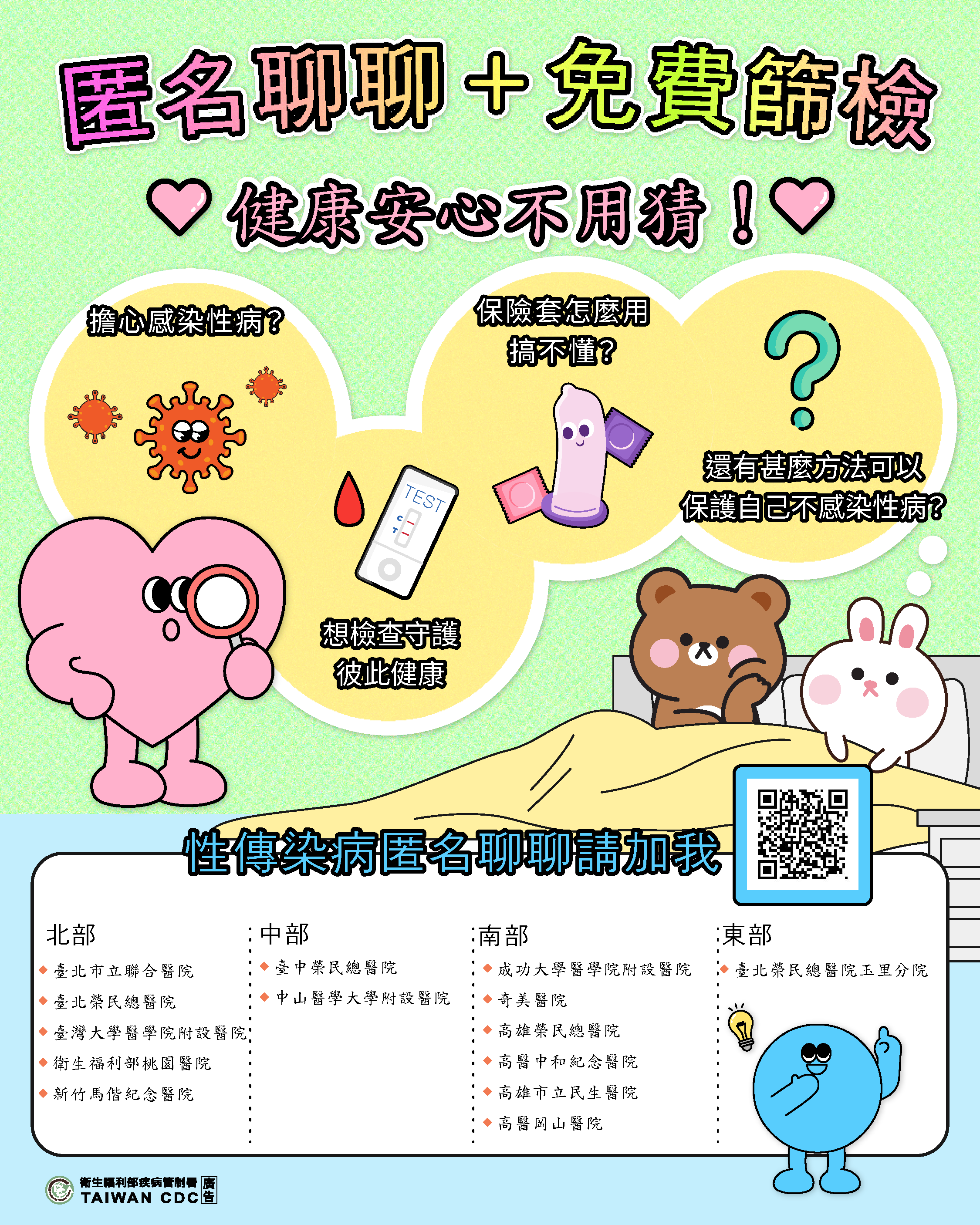 [衛生福利部 疾病管制署 ]匿名聊聊 免費篩檢 健康安心不用猜
