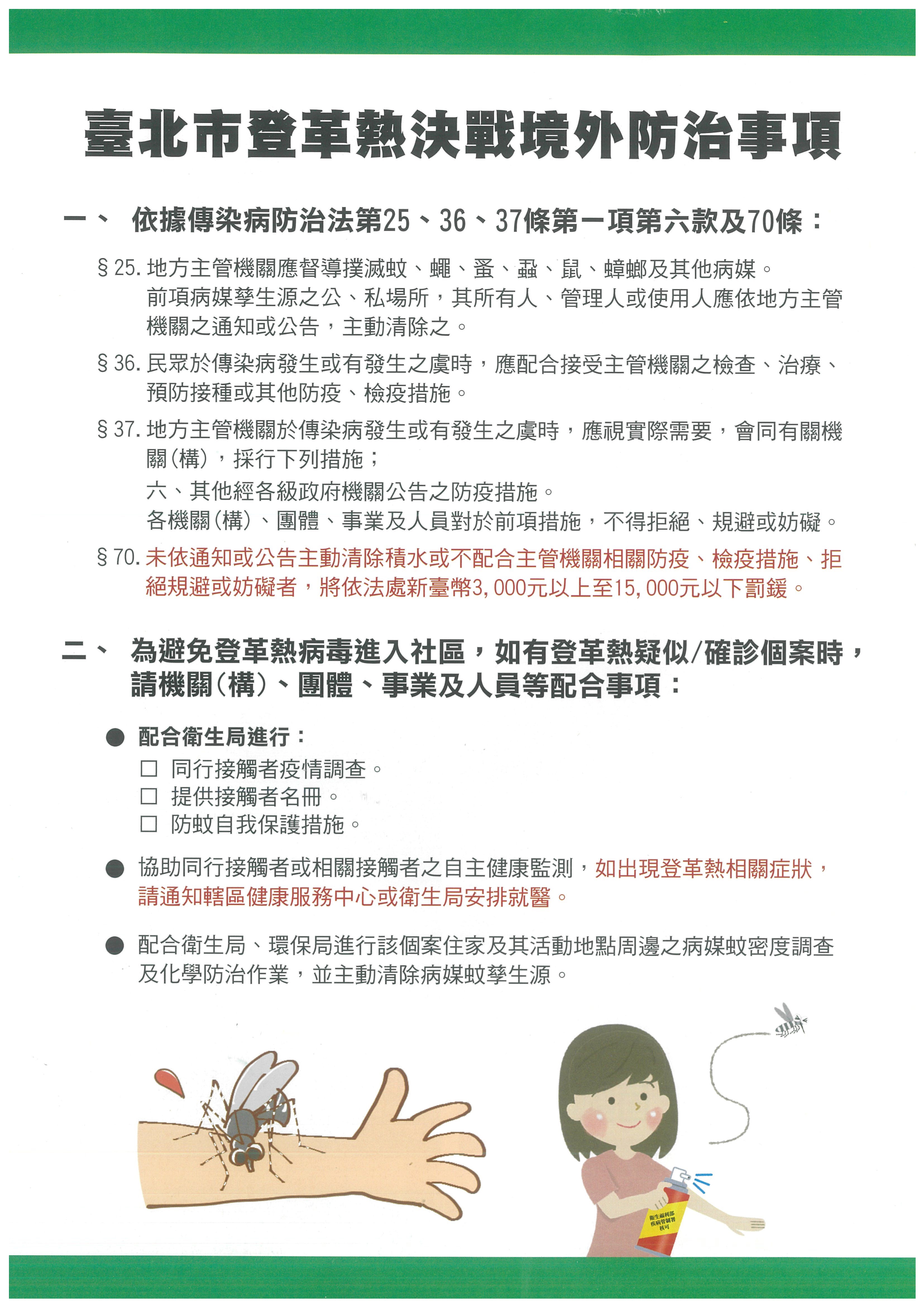 六、檢附臺北市政府衛生局登革熱防治宣傳圖卡。